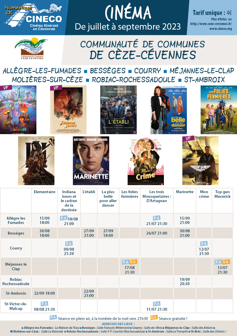 Programme Cinéco juillet à octobre 2023